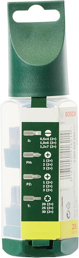 24 Adet vidalama ucu, U = 25 mm, PH 1/1/2/2/3/3, PZ 1/1/2/2/3/3, S 4/4/6/6/7/7 T 20/20//25/25/30/30