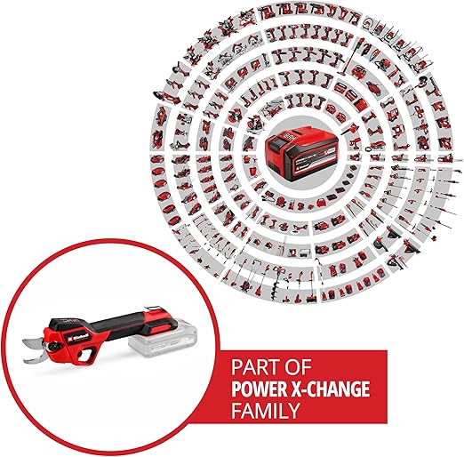 Power X-Change – Einhell Akülü Budama Makası GP-LS 18/28 Li BL-Solo, akülerin, şarj cihazlarının ve sistem cihazlarının esnek bir şekilde birleştirilebildiği Power X-Change ailesinin bir üyesidir.