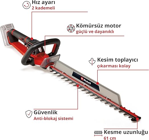 Güvenli saklama – Sağlam koruyucu kılıf ve tutucu, akülü çit budamanın güvenli bir şekilde taşınmasını ve korunaklı bir şekilde saklanmasını sağlar.