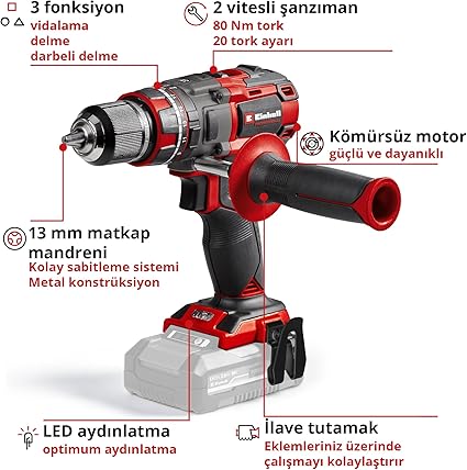 Konfor – Softgrip, titreşim sönümleme sistemi ve ilave tutamak sayesinde alet güvenli bir şekilde tutulur,Entegre LED ışık, çalışma alanını net bir şekilde aydınlatır,