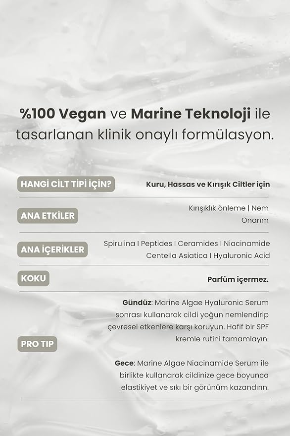 Cilt bariyerini güçlendiren Seramid, Peptit, Amino Asit, Centella Asit, Niacinamide ve 8 farklı molekül boyutundaki Hyaluronik Asit gibi özel içeriklerle zenginleştirilmiş bakım kremidir