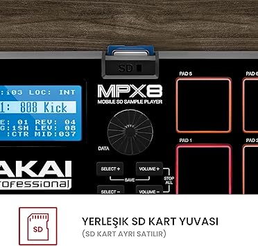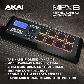 Professional MPX8 – Sample Pad Controller 8 Performansa Hazır Hıza Duyarlı Pedli, MIDI Bağlantısı ve Yerleşik SD Kart Yuvasına Sahip Taşınabilir Örnek, Siyah