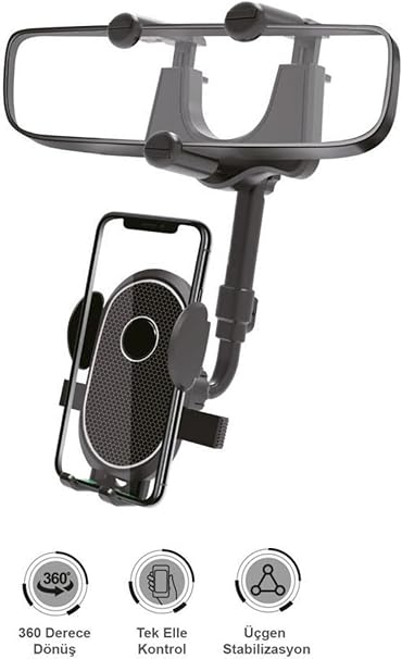 Profesyonel Araç İçi Telefon Tutucu Ergonomik Tasarım Rahat Kullanım Dikiz Aynasına Montaj 360 Derece Dönebilen Cep Telefonları İçin Uygundur RT-627 (RT-627)