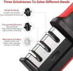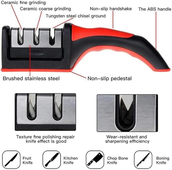 Mutfak bıçağı bileyici;3 aşamalı bıçak aksesuar bileme aracı3 adımlı bıçak bileme sistemi: inanılmaz 3 yuvalı sistemimizle bıçak bileme sanatında devrim yaratıyoruz ; 1. Elmas bileme çubuğu, 2. Yuva v şeklini düzeltmek için keskinleşmeden önce hasarlı bıçakları onarır ve düzeltir.