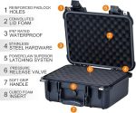 Yüksek kaliteli basınç valfi dahil: Yüksek kaliteli basınç valfi su moleküllerini dışarıda tutarken dahili hava basıncını serbest bırakır.