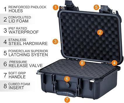 Mandal tasarımı ile kolay açılır: Geleneksel kılıflara göre daha akıllı ve daha kolay açılır. Serbest bırakmaya başlayın ve hafif bir çekme ile sadece birkaç saniye içinde açmak için bol kaldıraç sağlayın. Özelleştirilebilir önceden kesilmiş küp köpük, köpük taban ve kapakta kıvrılmış köpük