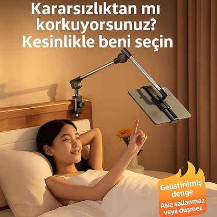 – Kolay Kurulum: Masa için tablet standını koyalca kurabilirsiniz.