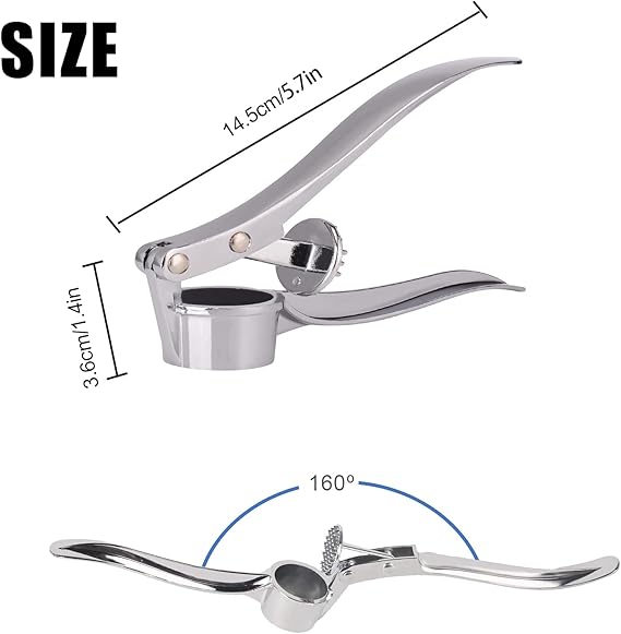 [Boyut] – Uzunluk – 16,1 cm; yuvarlak baskı kafası çapı – 1,2 inç RPA2023[Malzeme] — Jsdoin Sarımsak presi çinko alaşımdan oluşur, hafif ve sağldır. Sarımsak presinin ızgarası konusunda endişelenze gerek yok. RPA2023 [Kullanımı kolay] – Sarımsak presimiz ergonomik olarak tasarlanmıştır. Sarımsakları doğranmış sarımsaklara bararak barabilirsiniz. Aynı zanda kolay temizlenir. Temizlemek için sadece temiz su ile yıkayın veya bulaşık makinesine koyun.