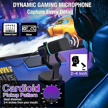 【Kontrol Edilebilir Parlak RGB Işık】 Bilgisayar için oyun mikrofonu, özelleştirilebilir RGB aydınlatma ile oyun kurulumunuzu geliştirerek görsel olarak çarpıcı bir deneyim yaratır. Oyun oynarken veya yayın yaparken mikrofonun düğmesini kullanarak aydınlatmayı kolayca ayarlamanıza olanak tanıyan 4 modlu ve 20’den fazla renge sahip bir RGB halkasına sahiptir. Renkleri değiştirmek için RGB düğmesini basılı tutmanız veya RGB efektini değiştirmek için tıklamanız yeterlidir. Ek olarak, mikrofonun hafıza işlevi son renk seçiminizi hatırlar ve güç açıldığında otomatik olarak yanar (not: bu özellik yalnızca USB bağlantılarıyla çalışır; XLR ile güç yoktur).