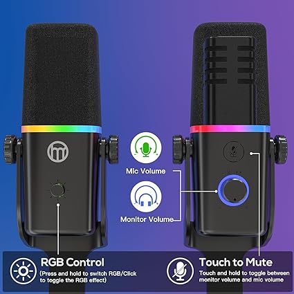 【Tap-to-Mute】 Kullanışlı Tap-to-Mute özelliği ile akış veya oyun oturumları sırasında bilgisayar podcast mikrofonunuzu kolayca sessize alın. Doğrudan mikrofonun üzerinde bulunan sessize alma düğmesine basit bir dokunuş, dikkat dağıtıcı tıklama sesleri olmadan sesinizi susturur; bu da onu piyasadaki diğer mikrofonlardan ayırır. Sessize alındığında, hem ses düğmesi hem de RGB daire kırmızıya döner, böylece mikrofonun kapalı olduğunu her zaman bilirsiniz. Podcaster, yayıncı, uzaktan çalışan, içerik oluşturucu, müzisyen, vokalist, eğitimci veya sunucuysanız, ses kapatma işlevi sesiniz üzerinde kontrol sağlamak için önemli bir özelliktir.
