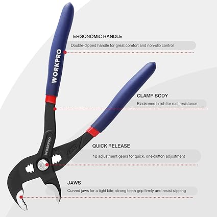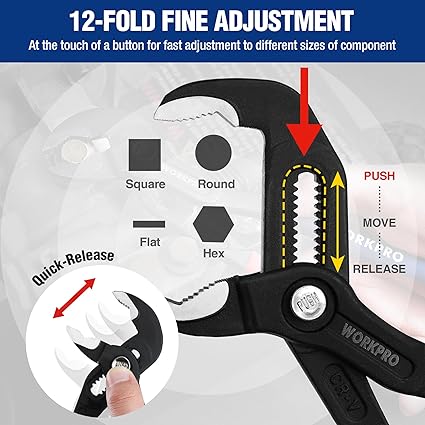 【Yüksek kaliteli malzeme】Isıl işlemden sonra yüksek sertlik ve mukavemete sahip krom vanadyum çeliği kullanılmıştır. Su pompası pensesini çok sağlam, uzun ömürlü, kolay deforme olmaz ve paslanmaz.