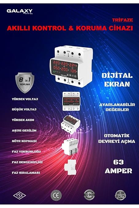 Profesyonel Trifaze Kontrol Cihazı Yüksek-Alçak Voltaj Akım Koruyucu (Konut İşyeri Fabrikalar)Uygunluk: 10 adet stokta