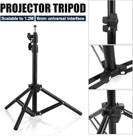 Projektör tripodu, 6 mm üniversal alaşım zemin tripodu katlanabilir ağır yük tripod ayağı, 1,2 m yüksekliğe kadar projektör için ayarlanabilir 6 mm arayüzlü tüm makinelere uyum