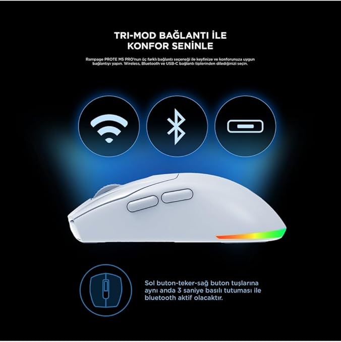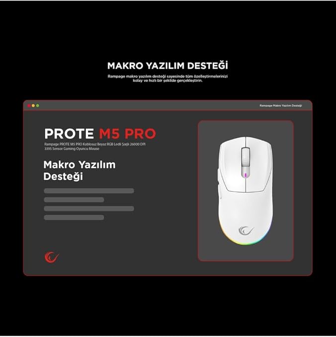 PROTE M5 PRO Kablosuz Beyaz RGB Ledli Şarjlı 26000 DPI 3395 Sensor Gaming Oyuncu Mouse