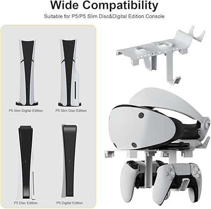Temiz ve Düzenli Düzenleyici】PS5 denetleyici tutucusu, yanlışlıkla düşmeleri önlemek, kontrol cihazlarınızı ve kulaklığınızı konsolda göstermek için PS5/PS5 Slim konsolun her iki tarafına 2 PS5 denetleyicisi/PS VR2 denetleyicisi/kulaklığı düzgün bir şekilde asabilir, zamandan tasarruf sağlar ve PS5 aksesuarlarınızı masaüstünde düzenli tutar.