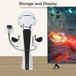 PS5 VR2 Denetleyici Tutucu, PS5/PS5 Slim için 2’si 1 Arada Magmetlc Şarj Kablosu ile Kulaklık Standı, PS5/PS5 Slim Konsol, Denetleyici, Kulaklık için Şarj Yerleştirme Standı Depolama Braketi