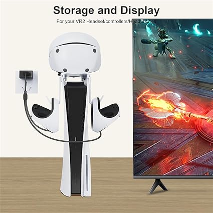 2’si 1 Arada Tutucu】Bu kulaklık askısı PS5/PS5 Slim konsolu için özel olarak tasarlanmıştır, PS5 kontrol cihazlarınızı/PS VR2 denetleyicilerinizi saklaması ve görüntülemesi kolaydır. Tip-c şarj kablosuyla birlikte gelir, iki PS5 denetleyicisi/PS VR2 denetleyicisini şarj edebilir ve kulaklığınızı aynı anda düzenleyebilirsiniz.