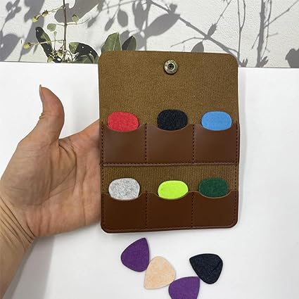 Gitar Penası Tutucusu: Gitar penalarınızı şık bir şekilde organize edin, kolay seçim için 6 yuvaya sahip PU deri pena tutucusu ile. gitar tutkunları için hediye