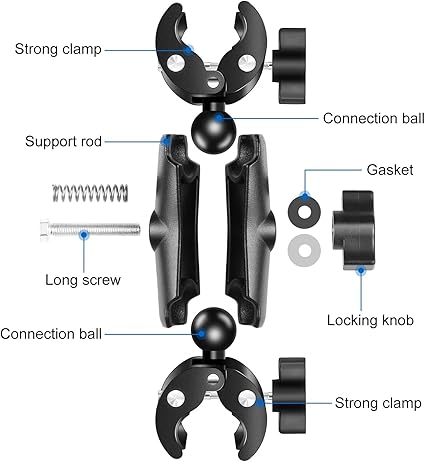 【Dayanıklı Malzeme】 Güçlü kelepçe, li ABS’den yapılmıştır ve braket bağlantı çubuğu, dayanıklı ve sağlam alüminyum alaşımdan yapılmıştır.