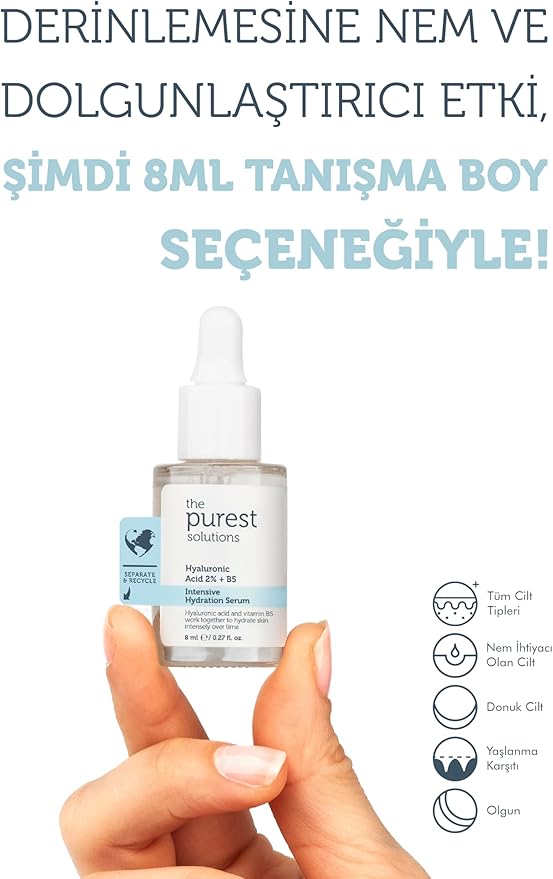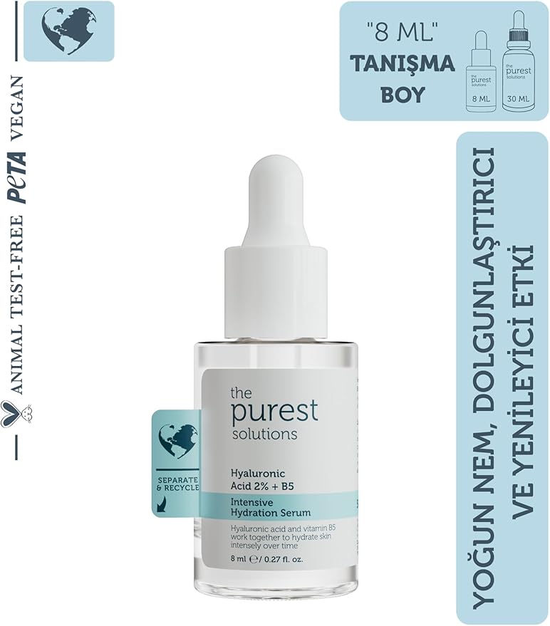 Purest Solutions Yoğun Nemlendirme ve Dolgun Görünüm Etkili Yenileyici Hyalüronik Asit Cilt Bakım Serumu, Seyahat Boy 8 ml