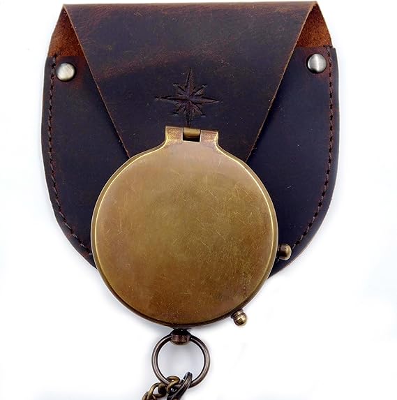 Sağlam konstrüksiyon: Pusula, dayanıklı pirinçten yapılmıştır ve onu hasarlara karşı koruyan dayanıklı bir deri kılıfa gömülüdür.