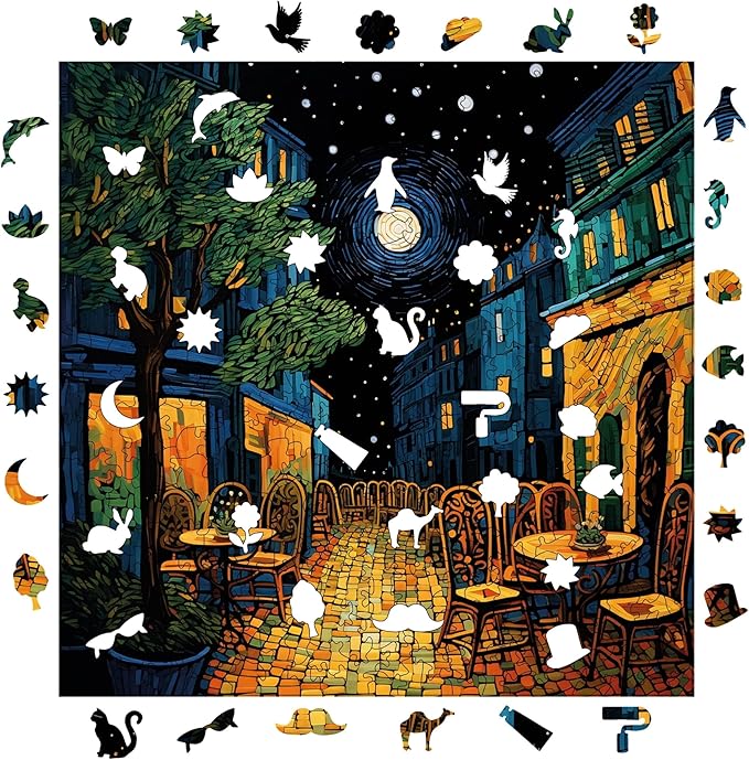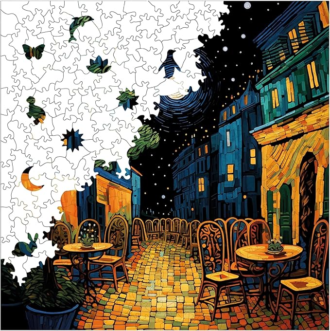 Puzzle Yetişkin – Van Gogh Kafe Terasta Gece Reprodüksiyonu – 353 Parça, 29 x 29 cm – Yapıştırıcı Folyo Dahil – Benzersiz Şekilli Parçalar & Özel Figürler – S1-32