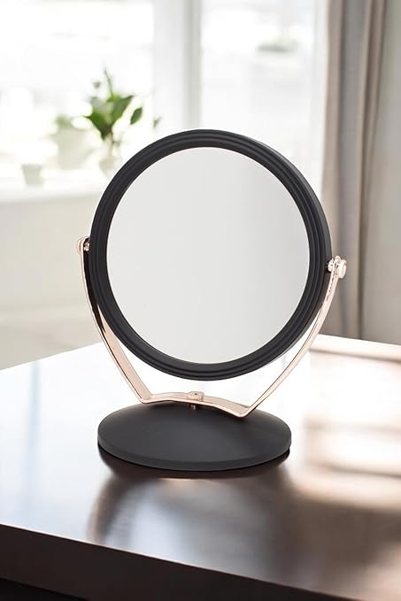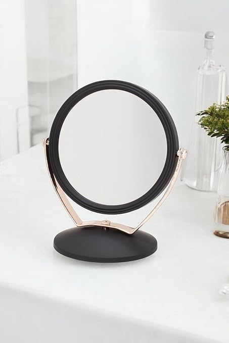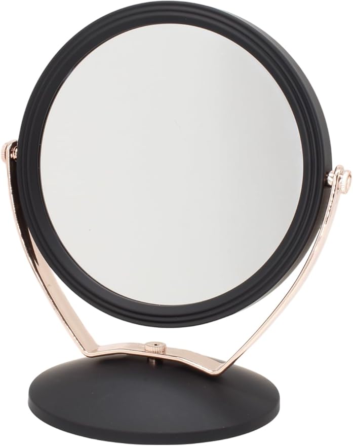 PVC Serisi 3x Büyüteçli Çift Taraflı Ayarlanabilir Eğimli Masa Üstü Makyaj Aynası 18×18 CM Yuvarlak