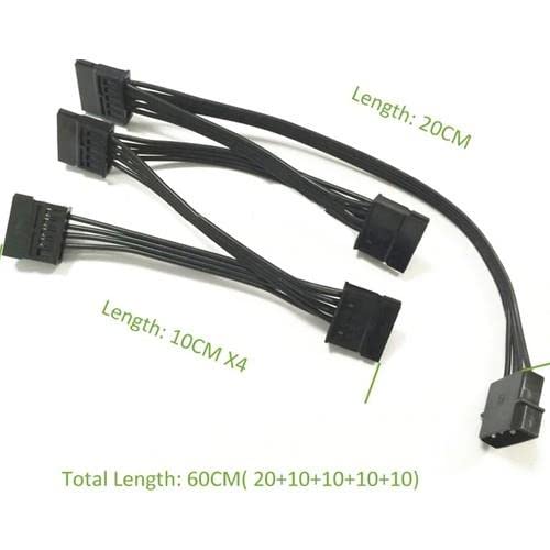 PX-4355 Molex To Sata Kablo, PSU Sata Çoklayıcı, 5 port Sata Power Çoklayıcı, 60cm Uzunluk,%100 Saf Bakır sata Çoklayıcı Kablo