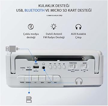 PX-680BT Müzik Seti Kasetçalar FM Radyo USB MP3 Player Bluetooth Hoparlör (Beyaz)