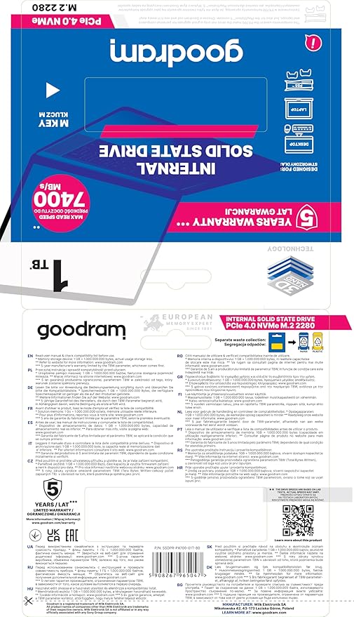 PX700 1TB SSD – PCIe Gen4, NVMe, 7400MB/s Okuma, 6500MB/s Yazma, SSDPR-PX700-01T-80