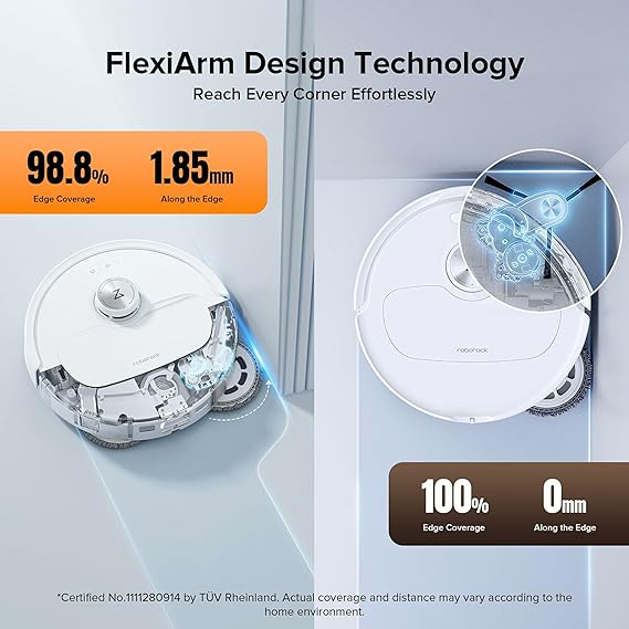 Yapay Zeka Destekli Akıllı Navigasyon & 62 Nesne Tanıma, FlexiArm & DuoRoller Riser ile %98,8 Kenar Kapsama + Zorlu Noktalarda Otomatik Yeniden Paspaslama