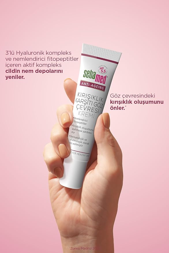 Sebamed kırışıklık karşıtı kremin formülü, üç farklı molekül ağırlığında hyalüronik asit ve nemlendirici fitopeptitler içerir