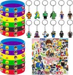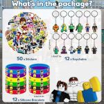 R-oblox 74 adet parti hediyesi, çocuk doğum günü misafir hediyesi seti, R-oblox anahtarlık, çıkartma, silikon bileklik, parti için oyuncak seti, çocuk doğum günü hediyesi