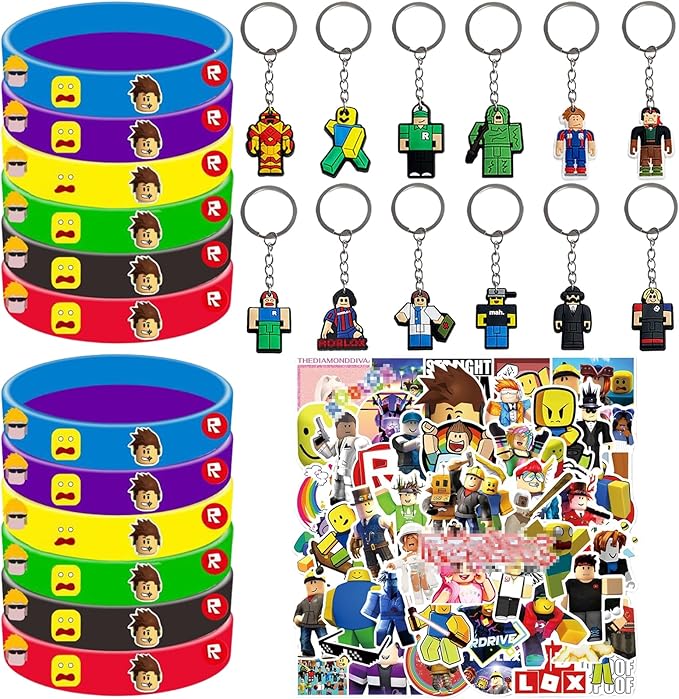 【R-oblox parti hediyesi】: Çocuk doğum günü hediyesi seti mevcuttur 12 anahtarlık, 12 parti silikon bileklik, 50 çıkartma. Parti hediyeleri bir çocuğu şaşırtmanın harika bir yoludur.