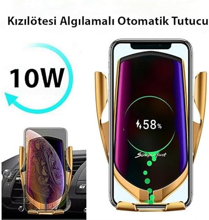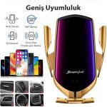 R2 Qi 10W Kablosuz Şarjlı Havalandırma Araç Telefon Tutucu, GOLD