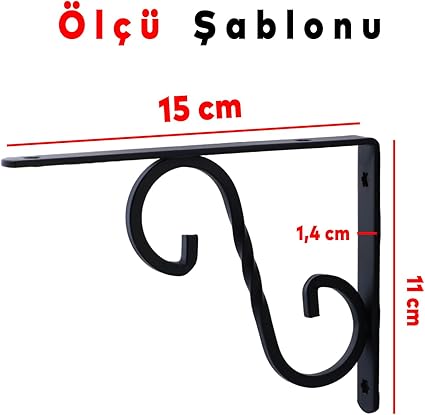 Raf Altı Raf Tutucu Ayak Ferforje Siyah 150×110 mm 2 ADET