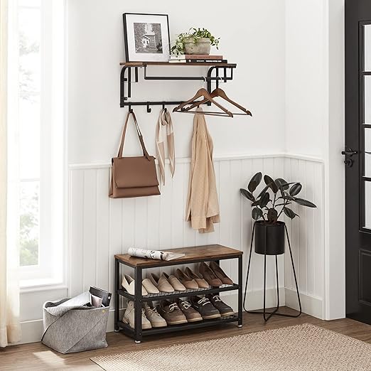 [3’ü 1 arada] Bir raf (30 x 66 cm), bir çubuk ve 5 kanca ile bu duvar askısı farklı saklama ihtiyaçlarınızı karşılar. Ceketleriniz, çantalarınız, şemsiyeleriniz, anahtarlarınız ve daha fazlası