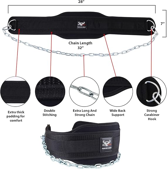 RAGE Daldırma Kemeri Ağır Hizmet Tipi 36 İnç Ayarlanabilir Daldırma Çelik Zincirli Ağırlık Kaldırma Kemeri Yastıklı Neopren Spor Salonu Kemeri Sırt Desteği Erkek Kadın Spor