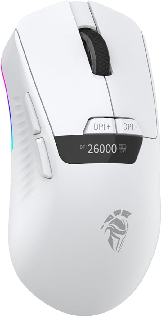 Raito RefleX 26000 Dpi Pixart PAW 3395 OLED Ekran & Makro Yazılım 59gr RGB Kablosuz Gaming Mouse – Beyaz (Tri Mod 2.4 GHz Kablosuz + BT5.1 + Type-C)