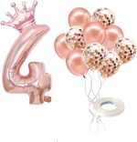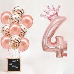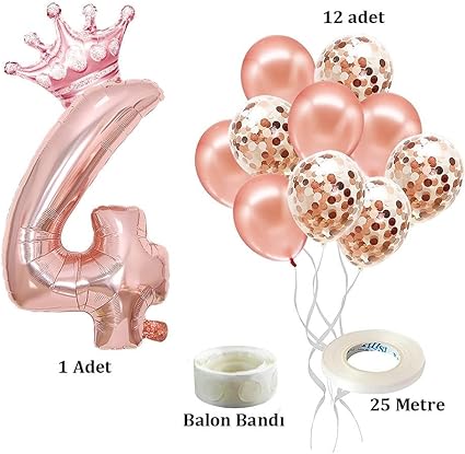 Rakam Folyo Balon, Kral Tacı, Konfetili Rose Gold Balon, Rafya ve Balon Bandı