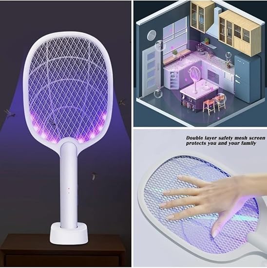 Raketi Sivrisinek Öldürücü Dik Durabilen Standlı 8 Pcs UV Işıklı 1500 mAh 3000v Raket, Aç-Kapa Düğmeli Elektrikli Sarjlı Sinek Raketi, Güvenli Kullanım
