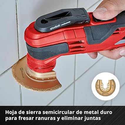 Karbür uçlu yarım yuvarlak testere bıçağı – Karbür uçlu kesici kenarı sayesinde 65 mm’lik çok fonksiyonlu alet aksesuarı, yarıkların kesilmesi ve ek yerlerinin çıkarılması için tasarlanmıştır.