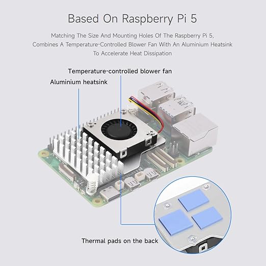 Raspberry Pi 5 için Aktif Soğutucu (B), Aktif Soğutma Fanı, Alüminyum Soğutucu, Termal Pedli