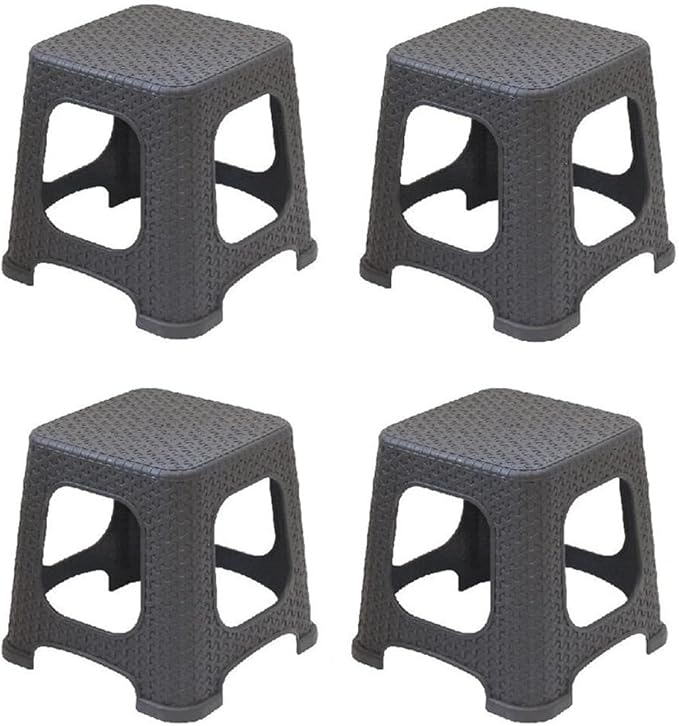 Rattan Hasır Desenli Küçük Tabure 4 lü Set GRİ