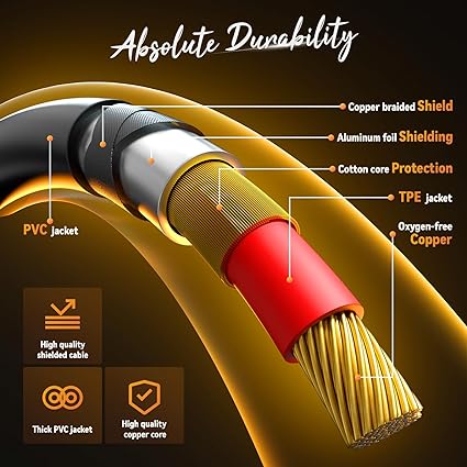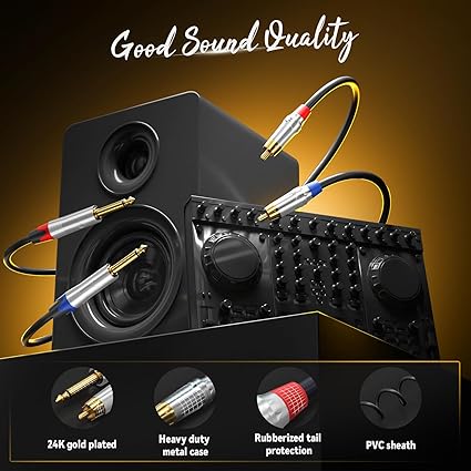 Ağır Hizmet Tipi 24K altın kaplama RCA ve 6.35mm konektörlerle, sinyal kaybını ve statik gürültüyü ortadan kaldırabilir, dayanıklılık sağlayabilir ve sinyal iletimini iyileştirebilir ve bakır kabuk, ses kalitesinin kaybını önleyen herhangi bir paraziti engeller.