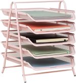 Reader Ağ Koleksiyonu Kağıt Rafı, 5 Katlı, Dosya Saklama, Çalışma Masası Düzenleyici, Metal Örgü, Metal, Pembe, 5 Katlı