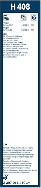 Rear Arka Silecek Citroen Berlingo (2005-2011), Peugeot Partner (2005-2015) [400 mm] H408 3397011410