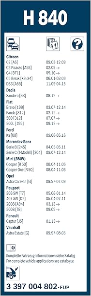 Rear Arka Silecek Dacia Duster (2018-2022) [290 mm] H840 3397004802