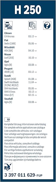 Rear Arka Silecek Honda HR-V (2015-2020), Suzuki Vitara (2015-2020), Mitsubishi ASX (2015 ve sonrası), Suzuki SX4 S-Cross (2013-2022) [250 mm] H250 3397011629