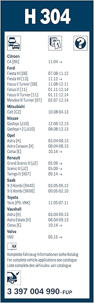 Rear Arka Silecek Nissan Qashqai (2007-2014), Ds Auto DS7 (2018-2021), Opel Corsa E (2015-2019) [300 mm] H304 3397004990